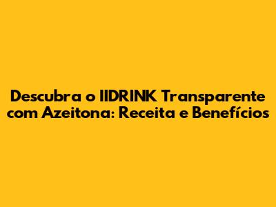 Descubra O IIDRINK Transparente Com Azeitona: Receita E Benefícios