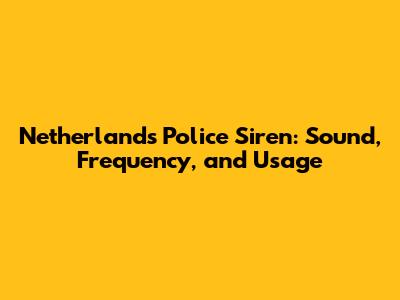 Netherlands Police Siren: Sound, Frequency, And Usage