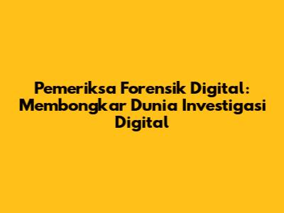 Pemeriksa forensik digital, atau yang juga dikenal sebagai analis forensik digital, adalah seorang profesional yang terlatih untuk mengumpulkan, menganalisis, dan melaporkan bukti digital yang dapat digunakan dalam investigasi hukum. Mereka bekerja dengan berbagai jenis perangkat dan media penyimpanan, mulai dari komputer dan ponsel pintar hingga server dan penyimpanan cloud. Tujuan utama mereka adalah untuk menemukan informasi yang relevan dan penting untuk mengungkap kebenaran, mengidentifikasi pelaku, dan memberikan bukti yang kuat di pengadilan. Mereka seperti Sherlock Holmes di dunia digital, mengandalkan keterampilan analitis, pengetahuan teknis, dan alat-alat canggih untuk memecahkan misteri.
