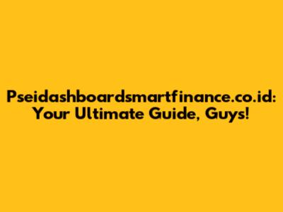 Hey everyone! Ever heard of pseidashboardsmartfinance.co.id? If you're into managing your finances, especially if you're dealing with the Indonesian financial landscape, then you've probably stumbled upon this. This isn't just any random website, folks; it's a gateway to a smarter way of handling your money. We're going to dive deep into what this platform offers, why it's a game-changer, and how you can leverage it to get your financial ducks in a row. So, buckle up, grab your favorite drink, and let's get this financial party started!