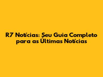 R7 Notícias: Fique Por Dentro Das Últimas Notícias Do Brasil E Do Mundo